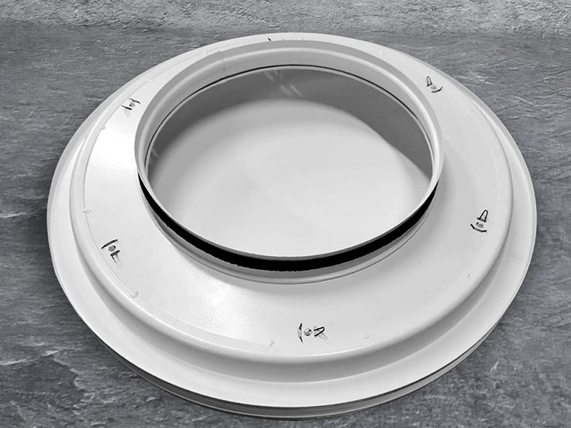 Основа изделия выполнена из оцинкованной стали толщиной 0,9 мм. Поверхность покрыта прочной матовой порошковой краской RAL 9016M. При необходимости изделие окрашивается в любой оттенок по шкале RAL — как лицевая панель, так и камера.